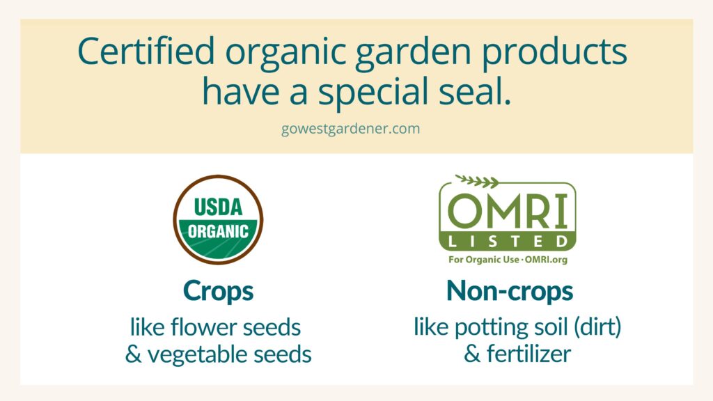 Certified organic garden products have a special seal on their packaging. You can see what the seals look like below.