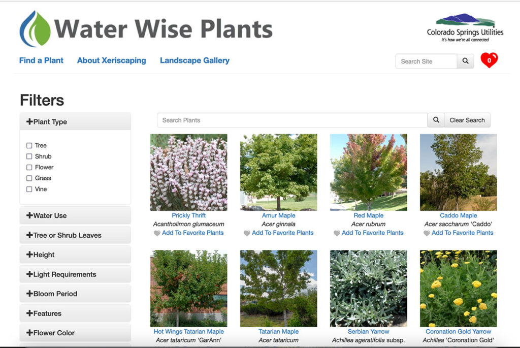 Colorado Springs Utilities has created waterwise demonstration landscapes that are open to the public. Similar to Conservation Garden Park above, they have a website that showcases the plants in their demonstration landscapes. You can search for waterwise plants using different criteria. Here are a few of their website features I find helpful: